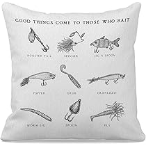 Amazon Com Funny Quotes Good Things Come To Those Who Bait Fishing Lures Accessories Fisherman Throw Pillow Cover 18 18 Fishing Decorations For Fish Room Lake House Gifts For Fishing Lovers Fishermen Men Home